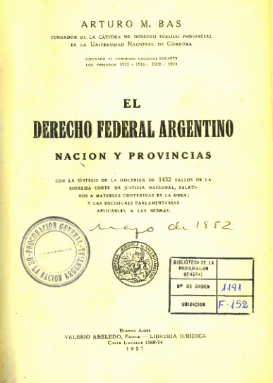 El derecho federal argentino | Bas, Arturo M. |