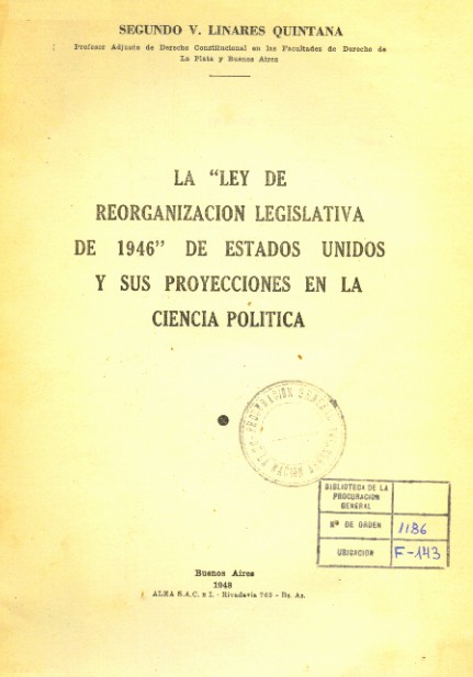 La ""Ley de reorganización legislativa de 1946"" de Estados Unidos y sus Proyecciones en la ciencia política