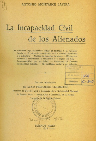 La incapacidad civil de los alienados | Montarcé Lastra, Antonio |