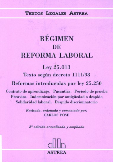 Régimen de reforma laboral: ley 25.013, texto según dec. 1111/98. Reformas introducidas por la ley 25.250.