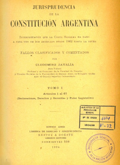 Jurisprudencia de la Constitución Argentina | Zavalía, Clodomiro |
